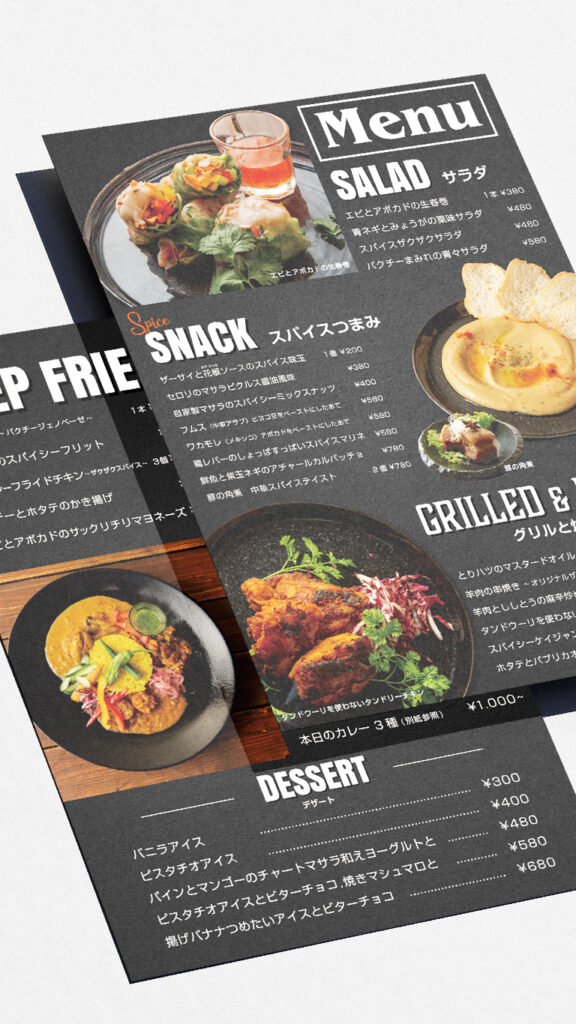 チラシ・パンフをはじめメニューなど、印刷物のデザインを行っています。